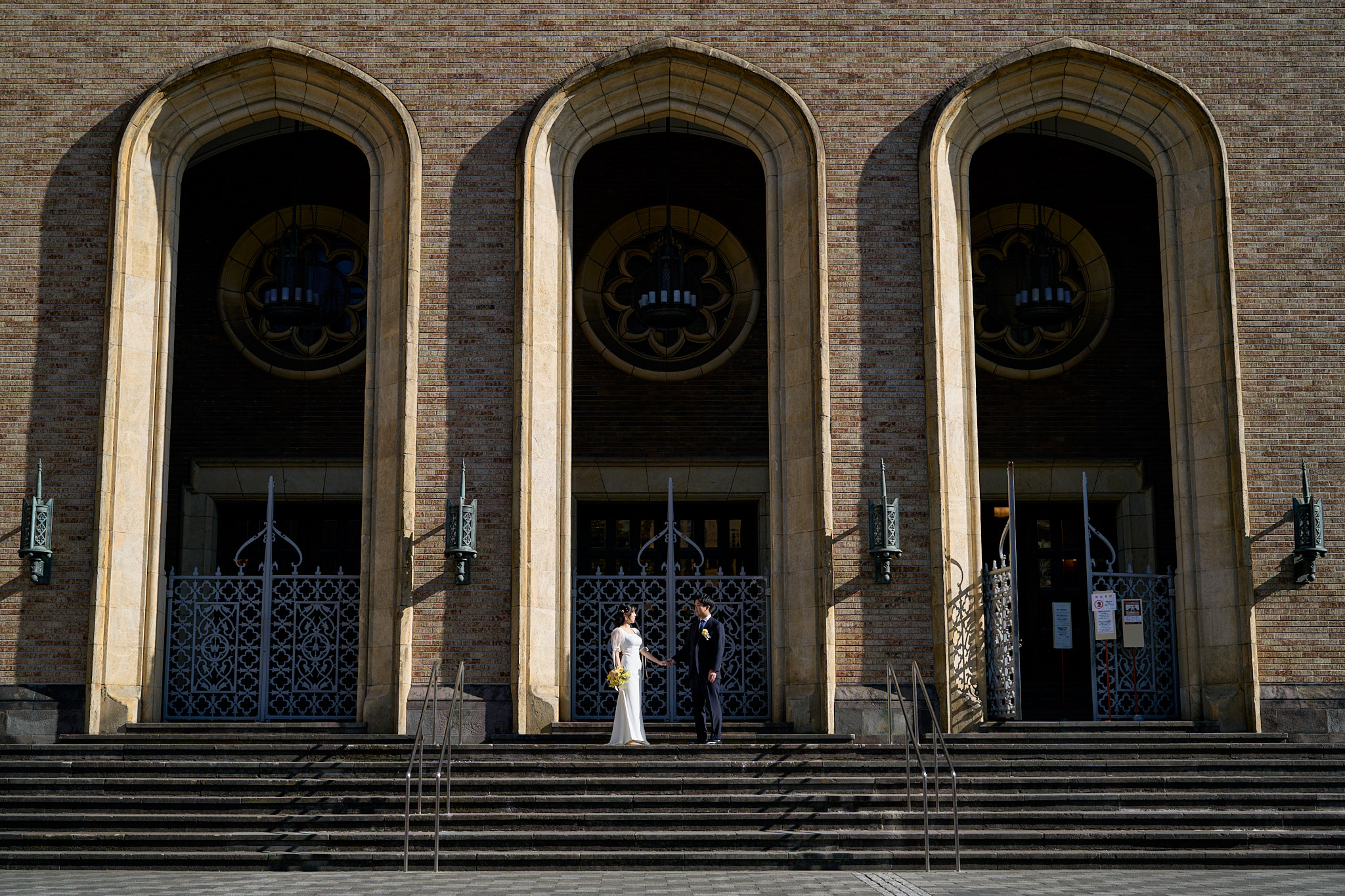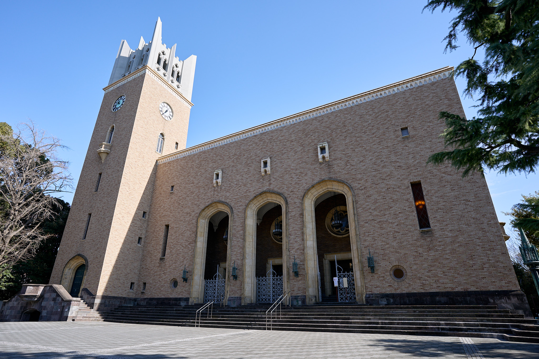 早稲田大学を象徴する美しい講堂の前では、